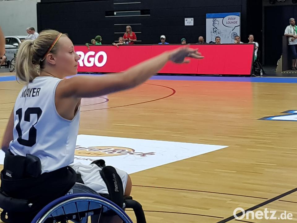 Quietschende Reifen, das Scheppern zusammenkrachender Rollstühle und mitten drin Svenja Mayer: Die 27-jährige Ambergerin gehört zum Team der deutschen Nationalmannschaft bei der Weltmeisterschaft im Rollstuhlbasketball in Hamburg und hatte am Donnerstagabend ihren ersten erfolgreichen Einsatz.