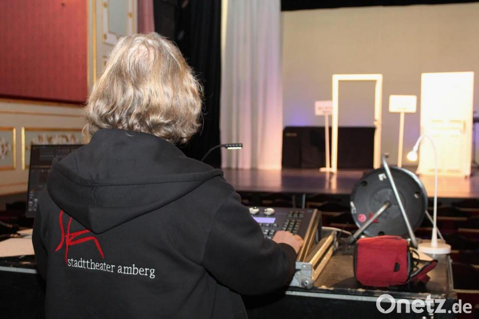 Dabei handelt es sich um Thoralf Kotlenga. Als Theatermeister ist er nicht nur dafür zuständig, dass während der Vorstellung die Beleuchtung stimmt, sondern auch dafür, dass der Ton passt. „Fast alle Vorstellungen hier im Haus sind Gastspiele“, erklärt der Wahl-Oberpfälzer, der sich vor inzwischen acht Jahren nicht nur für diesen Job, sondern auch für einen Umzug von Braunschweig nach Amberg entschieden hat. „Das bedeutet: Bühnenbild und Technik sind bereits festgelegt. Das läuft dann alles nach einem bestimmten Plan ab.“