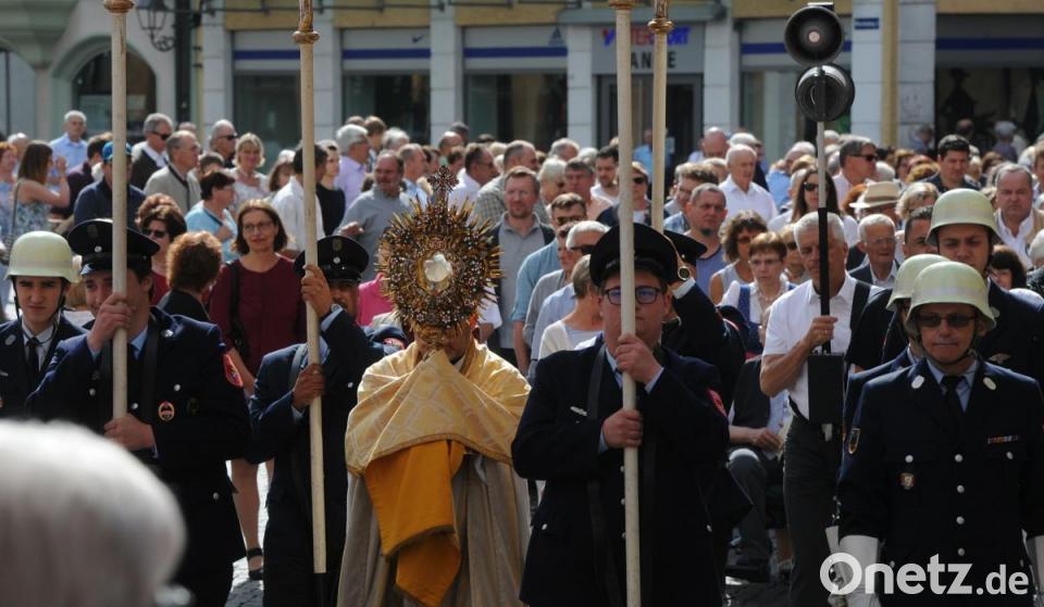 Hinter dem Kreuz zogen die Handwerker-Vereine, die katholischen Verbände sowie die Studentenverbindung mit ihren Fahnen, die politischen Vertreter der Stadt, Kommunionkinder, Ministranten und die Geistlichkeit, gefolgt vom Allerheiligsten sowie zahlreichen Gläubigen durch Georgen- und Regierungsstraße. Weiter ging's über die Neustift hinauf zum Malteserplatz, wo der Fronleichnamszug für eine kurze Andacht verweilte, um schließlich wieder zum Marktplatz zurückzukehren.