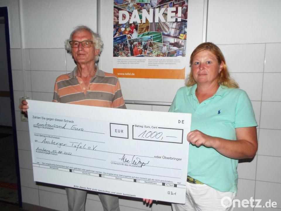 Der „Verein Kinder helfen Kindern“, vertreten durch Vorstandsmitglied Heike Kraft, übergab in den Räumen der Amberger Tafel an deren Vorsitzenden Bernd Saurenbach eine Spende von lang haltbaren Lebensmitteln im Wert von 1000 Euro. Wie Heike Kraft sagte, sei ihr Verein auch für Einzelschicksale da, helfe, wo es geht. Dies könne man aber nur anbieten. Kraft wünscht sich, dass sich Bedürftige auch direkt beim Verein in der Oberen Nabburger Straße (www.amberger-kinder.helfen.com) melden. Tafel- Vorsitzender Saurenbach ist "dankbar für jede Spende".