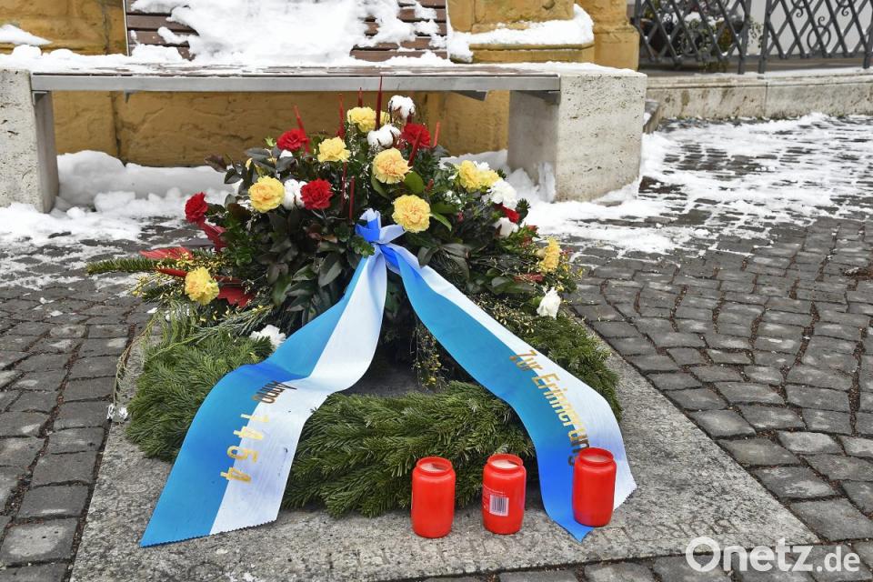 Ein Trauerkranz und drei erloschene Grabkerzen vor dem Rathaus, zeitlich weitab vom Volkstrauertag, das irritiert. Klarheit schafft eines der immer und überall präsenten sozialen Netzwerke: "Der Kranz wurde heute von den Aktiven des Cantus-Ferrum-Vereins für erlebte Geschichte Amberg", niedergelegt, postete das Stadtarchiv.