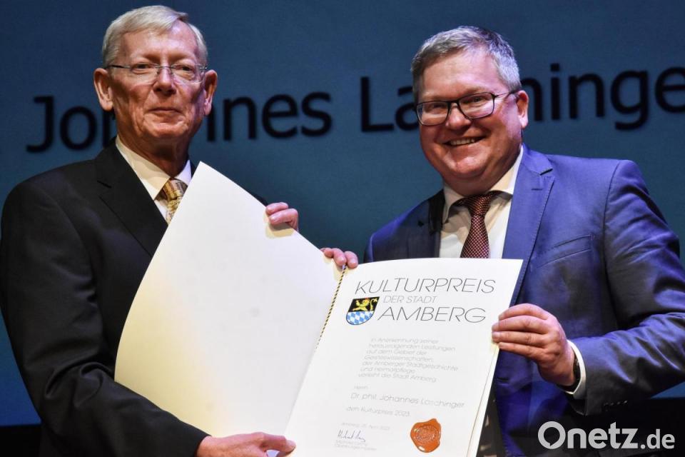 Der gebürtige Straubinger hat in seiner Dienstzeit bei der Stadt Amberg seit 1987 unermüdlich publiziert – 150 Veröffentlichungen stehen zu Buche, er hat Vorträge gehalten, geforscht und gefunden. "Er hat über die hellen und dunklen Seiten der bayerischen und Amberger Geschichte geschrieben", so Henker. Und selbst im Amberger Schafkopfset sind seine Spuren deutlich zu erkennen. Weil eben Johannes Laschinger viel, viel mehr war und ist als ein langweiliger Aktenverwalter. Er habe eben viel für die Amberger Stadtkultur getan, so Michael Henker, der Kulturpreis sei daher mehr als verdient.