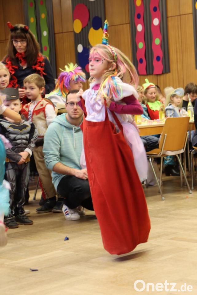 Ganz schön ins Zeug legten sich die kleinen Maschkerer beim Sackhüpfen, um sich einen der begehrten süßen Preise zu sichern.