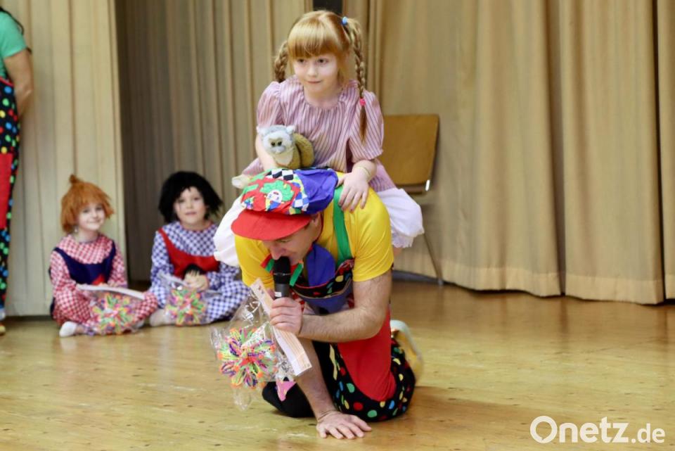 Wolfgang Fahrnholz sorgte mit den Jüngsten der Ballettschule Winter, die als kleine Pippis verkleidet waren, für zusätzliche Unterhaltung, sodass der Saal tobte.