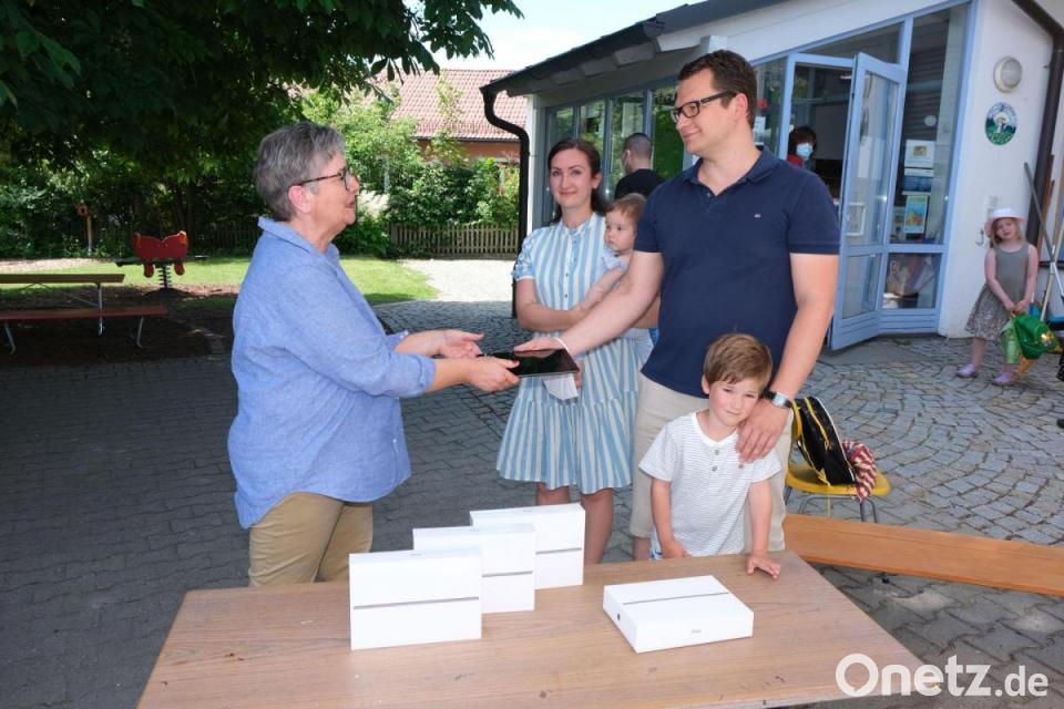 Medienpädagogische Arbeit genießt im Kochkeller-Kindergarten in Amberg einen hohen Stellenwert. Viktor Frank, dessen Sohn Felix den Hort besucht, förderte nun mit einer Spende von vier I-Pads und eines Beamers den kompetenten Umgang der Kinder mit neuen Medien. Frank unterstrich die Bedeutung medienpädagogischer Arbeit schon im Kindergartenalter. Deshalb habe er sich zu dieser Spende entschlossen, betonte er bei der Übergabe an die Leiterin der Kindergartens, Judith Heinl, die sich bedankte und sagte: „Klassische wie auch digitale Medien gehören heutzutage fest zum Alltag.“ Man wolle die Kinder in ihrem Medienerleben ernst nehmen und für einen kompetenten Umgang mit Medien stärken sowie ihre verantwortungsvolle, selbstbestimmte und kreative Mediennutzung fördern. Dank der Spende der Familie Frank stünden nun pro Gruppe zwei I-Pads und ein Beamer zur Verfügung.