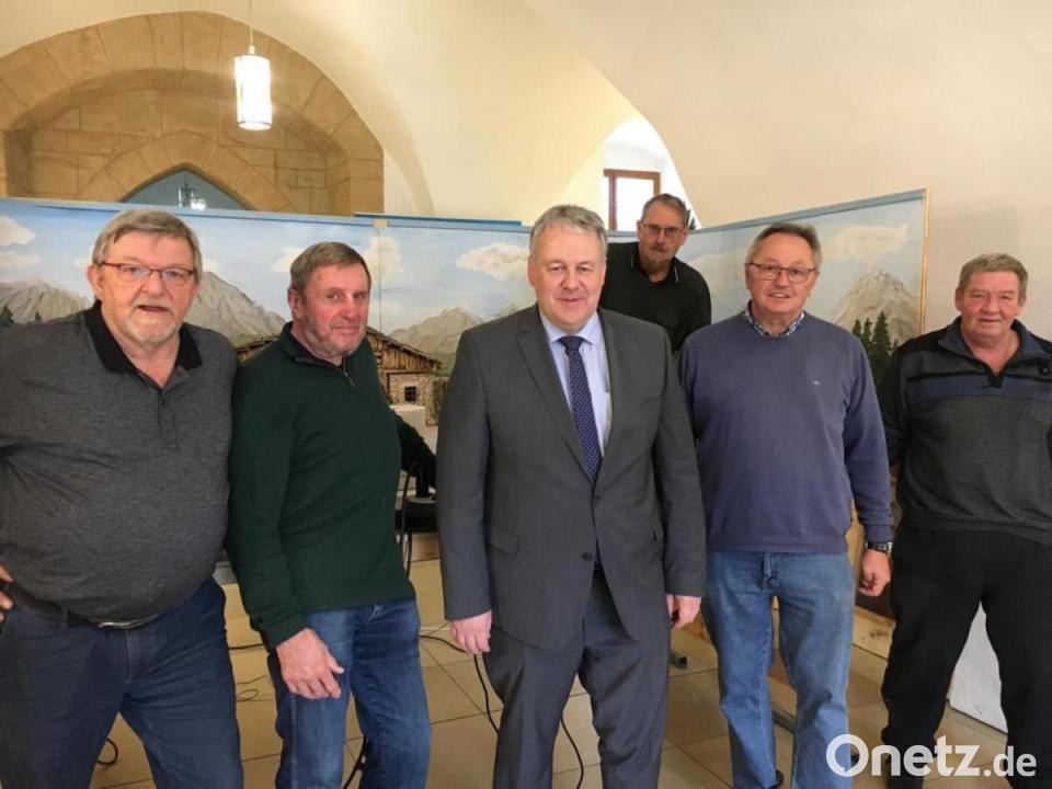 Einen ganzen Tag benötigten Konrad Gebert, Wolfgang Albersdörfer, Herbert Baehnisch, Claus-Dieter Seibold, Heinz Krause und Heiner Ruppert, bis das Kunstwerk im Foyer des Kurfürstlichen Schlosses aufgebaut war. Mit viel Liebe zum Detail haben die Vilsecker eine bayerische Landschaft um den Krippenstall mit 30 Figuren und rund 40 Schafen gestaltet. Auf sechs Quadratmetern Grundfläche wird mit handgeschnitzten Figuren des niederbayerischen Schnitzers Meyer aus Edenstetten das weihnachtliche Geschehen in einer heimatlichen Krippe nachgestellt. Personen aus dem eigenen Freundeskreis waren für den Schnitzer die Vorlage für die einzelnen Figuren. Als Josef hat sich der Künstler selbst dargestellt. Noch bis Ende Januar ist die Krippe im Landratsamt zu sehen.
