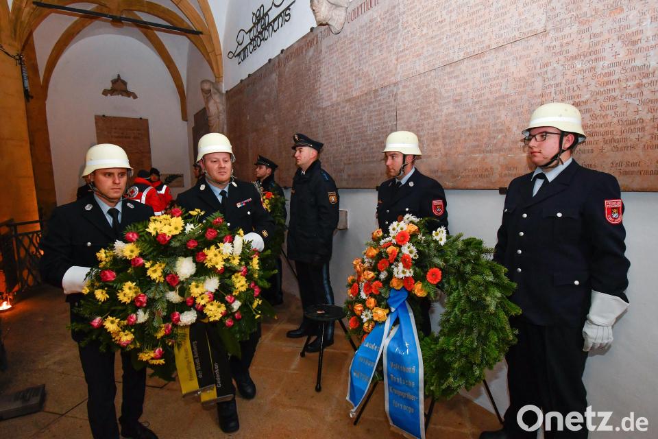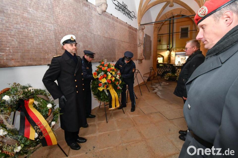 Der Vorabend des Volkstrauertags wird in Amberg traditionell dazu genutzt, um den Opfern von Kriegen und Konflikten zu gedenken. Dieses Mal war es sogar die zentrale Gedenkfeier für die gesamte Oberpfalz, die in Amberg stattfand. Am Kriegerdenkmal vor dem Rathaus legten die Mitglieder des BRK-Kreisverbands, des Bayerischen Landesverbands des Volksbunds der Deutschen Kriegsgräberfürsorge, der Freiwilligen Feuerwehr der Stadt Amberg, der Militärkameradschaft Amberg, der VdK Kreisgeschäftsstelle Amberg-Sulzbach und des Veteranen-, Soldaten- und Kameradschaftsvereins Amberg Kränze nieder. Die Bundeswehr legte im Namen des Bundesministers für Verteidigung, Boris Pistorius, ebenfalls einen Kranz nieder.