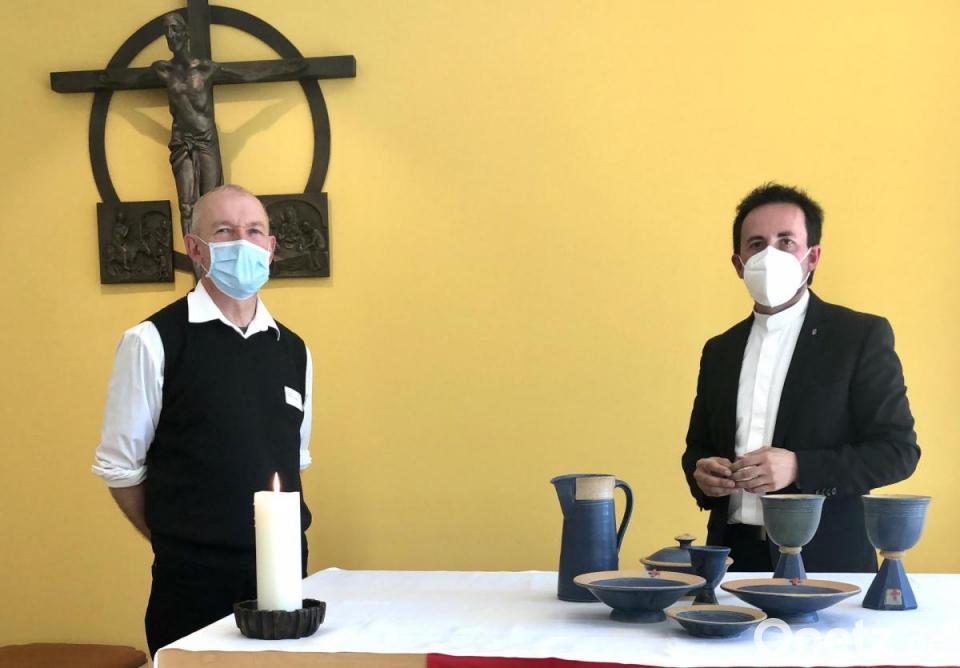 Dass die Übergabe in die Coronazeit fällt, war nicht absehbar. "Vorerst werden wir aber erst einmal keine Gottesdienste mit Abendmahl in gewohnter Form feiern", sagt Pfarrer Heinrich Arweck und nennt Gesundheits- sowie Hygieneschutzgründe, obwohl die Tongefäße speziell glasiert sind, um sie mit Alkohol desinfizieren zu können. Arweck: "Hier sollen Menschen heil werden an Leib und Seele. Wir möchten nicht, dass Kirche oder Klinik Menschen krank macht."