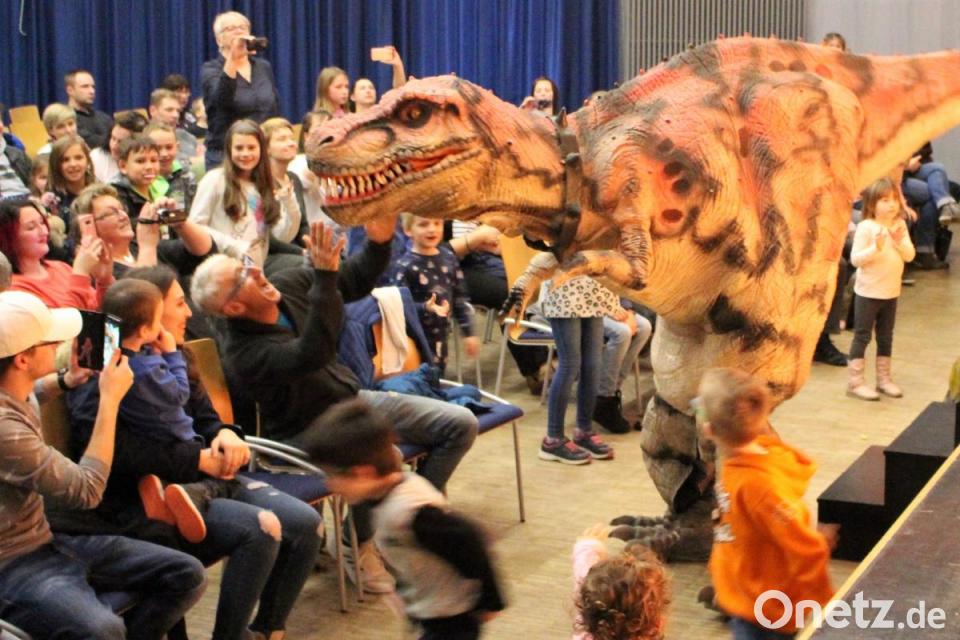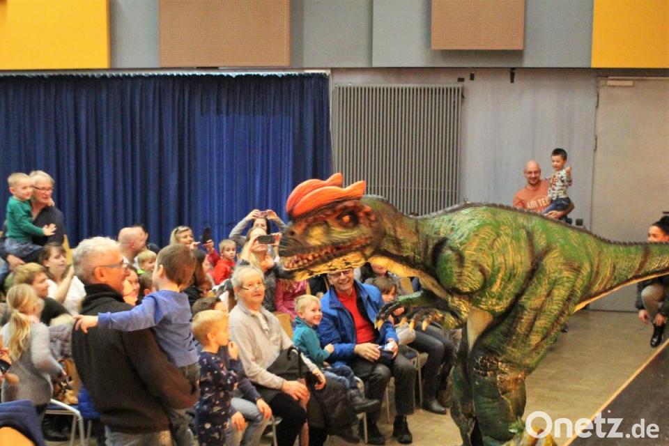 Es ist spannend und überwältigend. Die Smartphones werden gezückt, aber meist entstehen nur verwackelte Bilder, als der Carcharodontosaurier - auch bekannt als Scharfzahn - direkt auf das Publikum zutrampelt. Zwischen Neugierde, Sensationslust und auch Furcht bewegen sich die kleinen Dino-Fans. Manche verstecken sich sogar unter den Stühlen. Andere laufen mit den sich eigenständig bewegenden Nachbildungen mit.