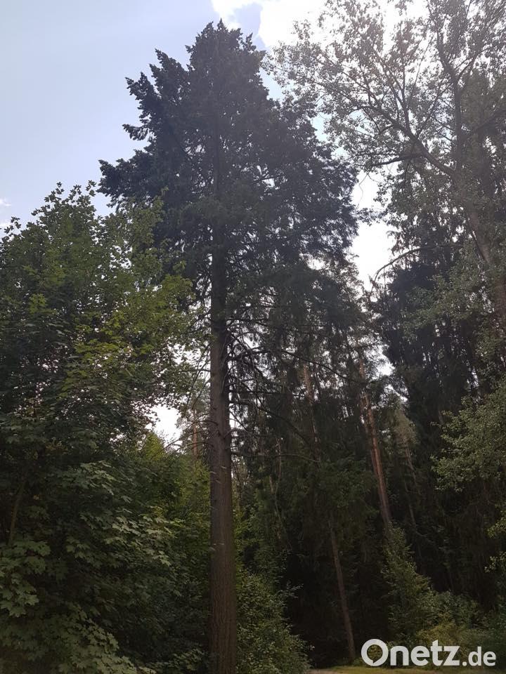 Da kann die alte Eiche am Ortseingang von Steinling (Gemeinde Edelsfeld) noch nicht ganz mithalten. Aber was nicht ist, kann ja noch werden. Wenn der Baum mit seiner kerngesunden, ausladenden Krone die nächsten 500 Jahre übersteht, hat er gute Chancen, in die Liste der Baumriesen Bayerns aufgenommen zu werden. Einer der dicksten Bäume, die Förster Reinhard Riedhammer vom Forstbetrieb Schnaittenbach der Bayerischen Staatsforsten kennt, steht in Aschach beim Wasserhochbehälter, unweit der Donatus-Kapelle. Der Stamm der Eiche hat einen Umfang von 3,70 Metern. "Der Baum ist sicher älter als 100 Jahre", sagt Riedhammer mit dem Maßband in der Hand. "Vielleicht sogar 150 Jahre." Möglicherweise beginnt ihre Geschichte, als einer der bayerischen Könige anordnete, jedes königliche Forstrevier möge ein Hektar seiner Waldfläche mit Eichen bepflanzen. In ganz Bayern entstanden deswegen Eichenhaine - zum Beispiel neben dem Gelände der Bereitschaftspolizei in Sulzbach-Rosenberg oder der "Oicherlgoatn" zwischen Wutschdorf und Hainstetten (Gemeinde Freudenberg). "Bei freistehenden Bäumen ist das Alter schwer zu schätzen", erklärt Riedhammer. Denn die Bäume können besser wachsen und sind folglich dicker als Artgenossen, die in direkter Konkurrenz zu Nachbarbäumen stehen. Die dicke Eiche bei Aschach ist für Riedhammer zwar schön anzuschauen - beeindruckende aber findet er so manche Douglasie im Umkreis von Amberg. Am Johannisberg steht ein Exemplar mit einer Höhe von 52 Metern. "Die Douglasien sind hier nicht heimisch", weiß der Förster. "Sie stammen aus Nordamerika und wurden ab Mitte des 19. Jahrhunderts versuchsweise bewusst in Bayern angebaut." Allerdings hat sich der Baum - obwohl er hier gut gedeiht - nicht massenweise durchgesetzt, denn schon im vergangenen Jahrhundert galt die Devise, die Wälder wieder mehr der natürlichen Baumverteilung anzupassen. Vielleicht führt aber der Klimawandel dazu, dass die Douglasie die Fichte auf trockenen Standorten ersetzt, "weil sie mit geringerer Wasserversorgung besser zurecht kommt".
