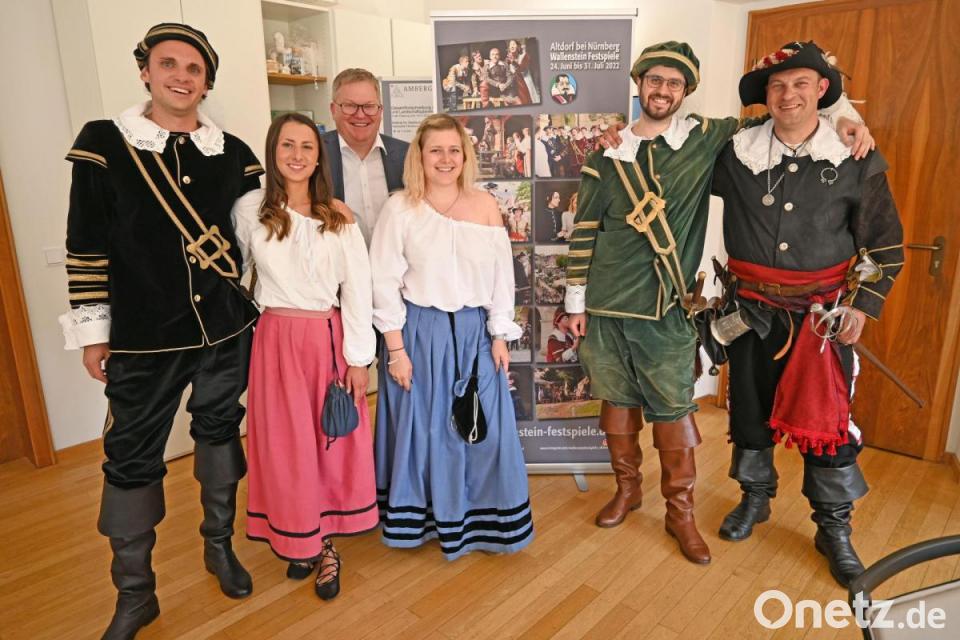 Er kam in friedlicher Mission: Der böhmische Feldherr Wallenstein – in Person von Steven Himmelseher –mit Gefolge besuchte Oberbürgermeister Michael Cerny im Rathaus, um ihn und die Amberger zu den Wallenstein-Festspielen nach Altdorf einzuladen.