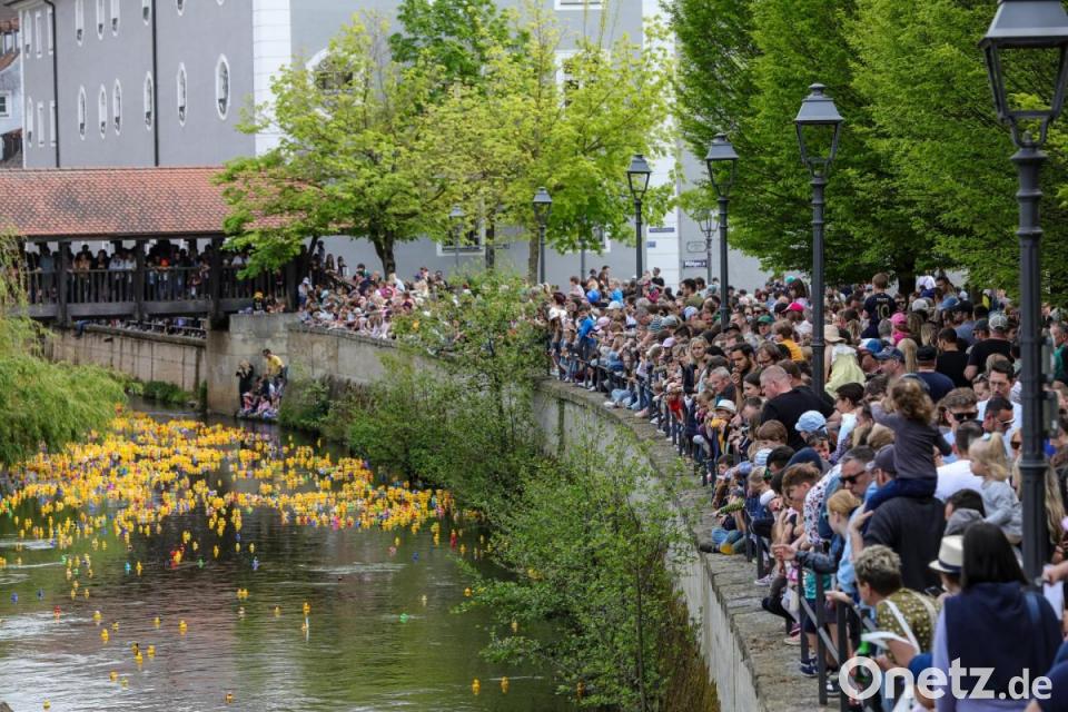 Wer am Abend zu Hause erzählt hat, wie es tagsüber in der Stadt war, dürfte sowas wie "Es war die Hölle los" gesagt haben. Schon eine Stunde vor Rennbeginn drängten sich die Menschen entlang der Promenade an der Vils zwischen Fronfestgasse und Lederersteg, und zwar so, dass ein Durchkommen fast gar nicht mehr möglich war. "Vergangenes Jahr hatten wir das erste Rennen seit Corona. Das war schon super", sagte Heil. "Aber heuer, auch noch mit dem guten Wetter, ist das überragend." Tatsächlich war es fast schon eine Herausforderung, auf der Hauptroute des Rennens vom Start bis zum Ziel schnell genug zu sein, um die ersten Enten ins Ziel schwimmen zu sehen.