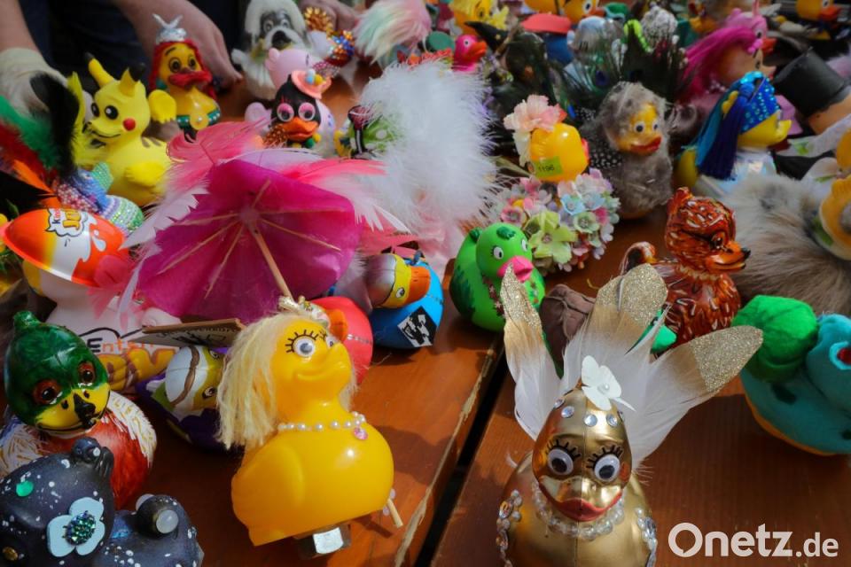 Prämiert wurden auch in diesem Jahr wieder die schönsten 15 Enten. Die unter den 9000 teils liebevoll verzierten Tieren zu bestimmen, war alleine schon eine schwierige Angelegenheit. Das sah auch Oberbürgermeister Michael Cerny so, den man vor der Preisvergabe mit angespannter Miene und prüfendem Blick längere Zeit über die 15 besten Enten gebeugt beobachten konnte. "Die Kinder haben sich eine riesige Mühe gemacht. Es geht eigentlich auch gar nicht drum, dass die Sieger-Ente die absolut schönste ist, weil da so viele ganz aufwendig und toll gestaltete Enten dabei sind." Klar ist aber, die Sieger-Ente ist eine ganz besondere. Sie wurde vollkommen zum Dino umgestaltet, sodass sie eigentlich gar nicht mehr als Ente durchgeht. Für die Dino-Fans: Sie ist ein roter Triceratops geworden. Aber auch die anderen Sieger-Enten waren totale Hingucker. Harry Potter, ein Astronaut, ein Ninja Turtle, Idefix, eine Ente mit Zylinder und Frack und sogar eine als Admiral, die ein ganzes U-Boot unter dem Bürzel hatte.