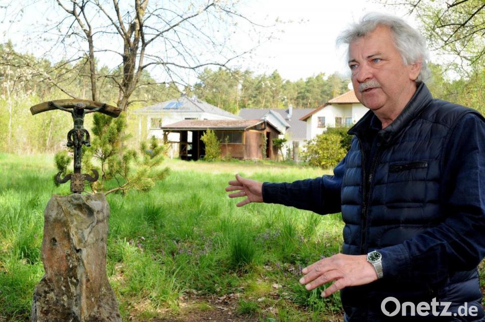 Georg Kolbeck ist ein sehr künstlerischer Mensch. Sein Garten in Amberg hinter der Mauer ist ein wahres Schmuckstück, seit 20 Jahren ist er auch Mieter des Doggenhansl, des ehemaligen Amberger Schuldturms. In dem bewahrt er unter anderem sein Lapidarium auf, eine Sammlung von teilweise kunstvoll bearbeiteten Steinen. Einer dieser Steine, ein Fialstein von einer Kirche aus gotischer Zeit, ist jetzt umgezogen. Und zwar auf ein Grundstück, das Georg Kolbeck in Kienlohe gehört. Dort geht ein uralter Pilgerweg vorbei, der von Ursulapoppenricht aus auf den Mariahilfberg führt. Einmal im Jahr wird er noch von frommen Menschen begangen, dann kommen sie auch an Georg Kolbecks Grundstück vorbei.