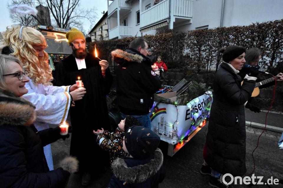 Eiskalt war’s, aber wenn der Weihnachtsbulldog mit Pfarrer David Scherf und Weihnachtsengel Tobias Amann am 23. Dezember durch das Bergsteig- und Dreifaltigkeitsviertel fährt, wird es einem prompt warm ums Herz. An elf Stationen hielten die beiden an. Es wurde das Friedenslicht verteilt. Mit dabei waren die Musiker Diana Laden und Michael „Dandy“ Dandorfer, die für die richtige Stimmung sorgten. Das Konzept war einfach und genial: Wenn die Menschen, aus welchen Gründen auch immer, nicht in die Kirche gehen können, kommt die Weihnachtsgeschichte eben zu ihnen.