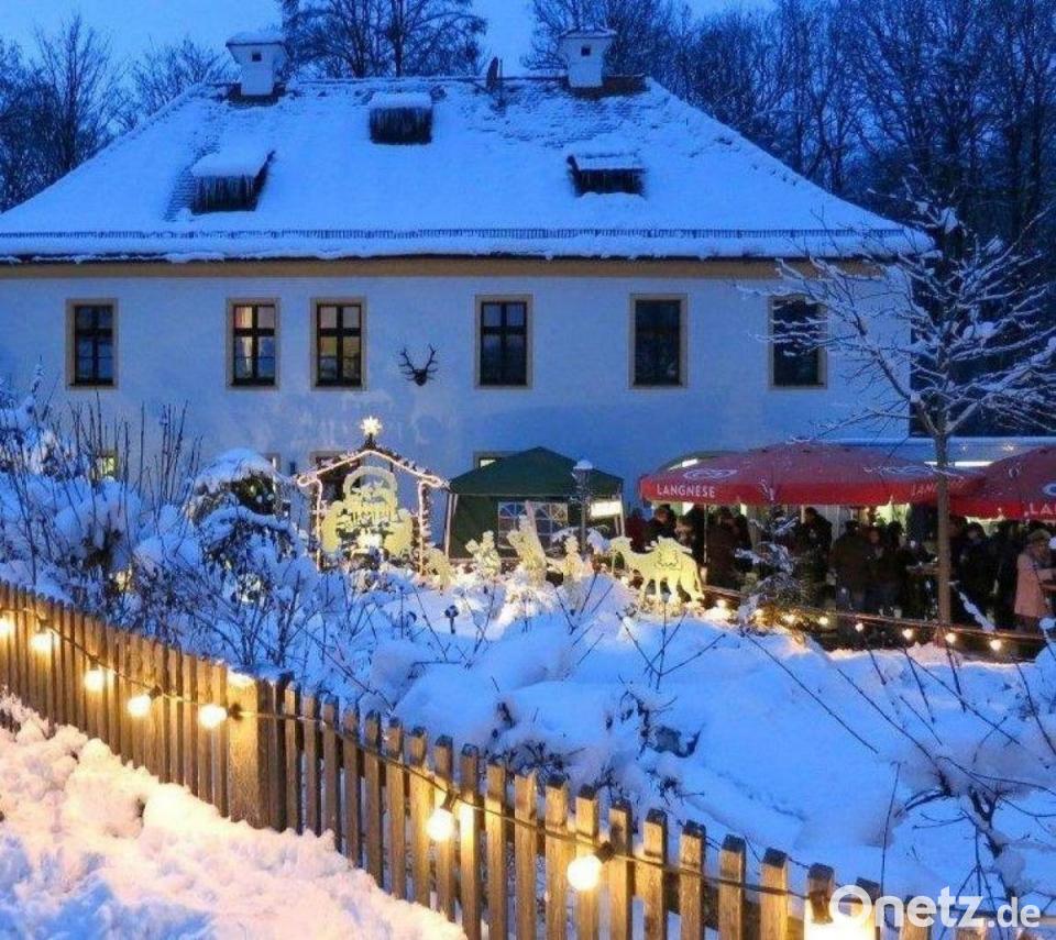 Zum Essen gibt es Wildgulasch, Wildschweinbraten am Spieß, Bratwürste vom Grill und Räucherfisch, außerdem werden Weihnachtsgebäck, Glühwein und Kaffee angeboten