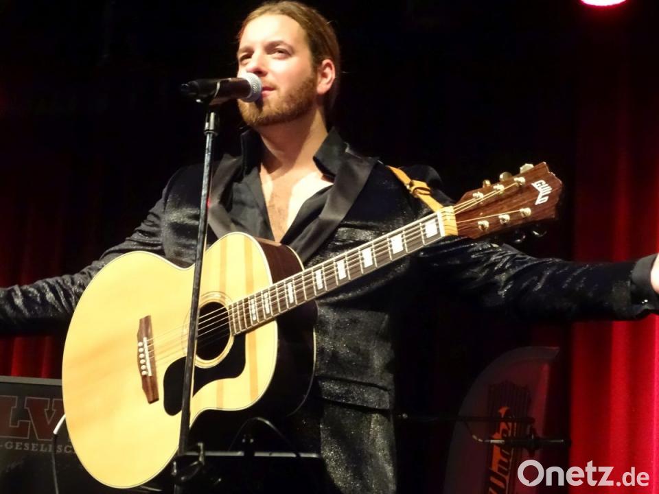Nur 200 Meter davon entfernt ist jetzt einer aufgetreten, der noch nicht geboren war, als der Megastar am 16. August 1977 das Zeitliche segnete. So spann sich der Bogen von eben diesem Maxplatz hinauf zum Musikomm an der ehemaligen Kaiser-Wilhelm-Kaserne. Eine rockige Zeitreise mit schier unglaublichen Effekten. Da steht er also, dieser Ron Glaser. Vor lange zuvor ausverkauftem Haus und begleitet von seiner famosen Band The Ridin' Dudes. Eine Stunde lang machen sie Rock and Roll. Bereits dabei zeigt sich, dass Glaser nicht nur die rund 1000 Songs seines Idols Elvis beherrscht. Er kann Chuck Berry, legt eine perfekte Fassung von Dions "The Wanderer" hin.