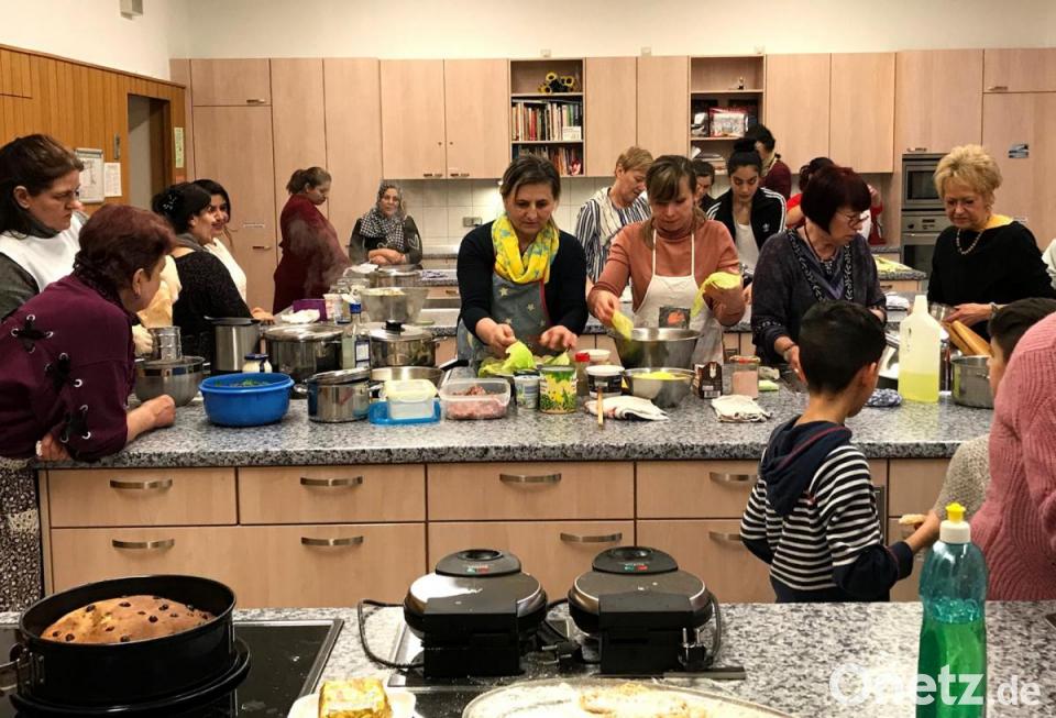 Gemeinsames Kochen und gemeinsames Essen verbindet auch die Kulturen. Rund 40 Frauen und 20 Kinder aus Syrien, dem Irak, der Ukraine, Russland, Moldawien, Nigeria und Deutschland folgten der Einladung des Weltfrauen-Cafés zum gemeinsamen Kochnachmittag in die Schulküche der Dr.-Johanna-Decker-Schule. Aus Putenfleisch, Reis, Nüssen und Rosinen entstand ein irakisches Gericht.