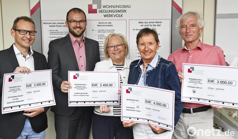 Mit den diesjährigen Empfängern der insgesamt 15.000 Euro trafen sich zur Übergabe Altbekannte: Marianne Gutwein vom Sozialdienst katholischer Frauen (SkF) und Bernhard Saurenbach von der Amberger Tafel nahmen die Schecks für vier Projekte entgegen. Dagmar Kiener von der Werkvolk-Kiener-Stiftung ist sich sicher: "Hier kommt das Geld da an, wo es gebraucht wird." Und gebraucht wird es dringend.