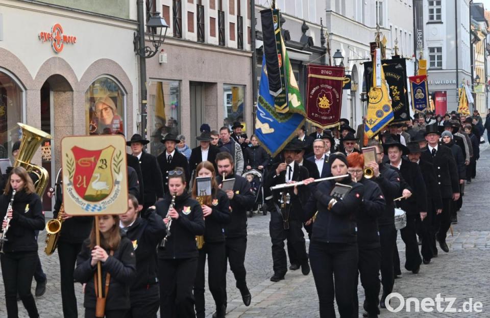 Die Zimmerer und Schreiner pflegen die Tradition der Josefifeier in Amberg. Ein kräftiger Paukenschlag forderte am Sonntag am Schrannenplatz zum Start des Kirchenzugs zur Basilika St. Martin auf. Voraus marschierte die Ammerthaler Blaskapelle, gefolgt von den Fahnenabordnungen der Gesellenvereine, die aus der gesamten Oberpfalz, auch aus den neuen Bundesländern, der Tschechische Zimmerer- und Dachdeckerverband sogar mit rund 20 Personen aus Prag, angereist waren.