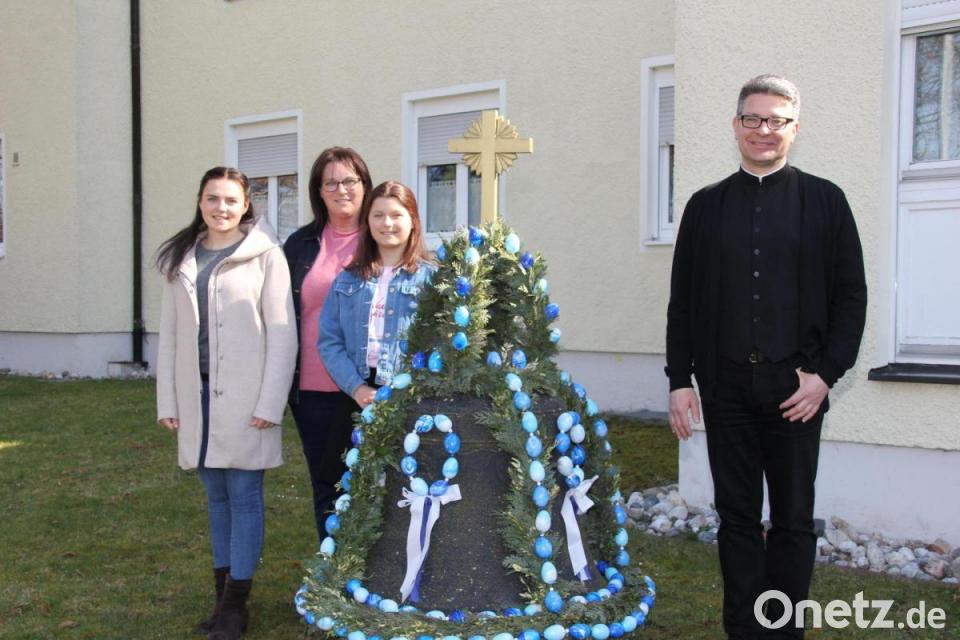 Bei den Weigls wird das Schmücken der Osterglocke im Pfarrgarten von St. Konrad in Ammersricht zur jährlichen Familienaktion. Angefangen mit dem Osterglockenschmücken hat Manuela Weigls Schwiegermutter mit einem kleinen Kreis von Frauen aus der Pfarrei. Als die corona- und altersbedingt diesen jährlichen Arbeitseinsatz nicht mehr leisten konnten, hat Manuela Weigl das Schmücken der Osterglocke mit ihren Töchtern Johanna und Leonie übernommen. Unterstützung bekommt die Familie von der Blumenstube Elfi beim Binden des Grundgerüsts aus grünen Zweigen.