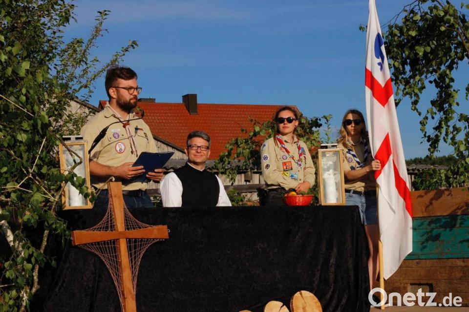 Der Siegerehrung folgte eine feierliche Andacht mit Pfarrer Michael Jakob, welche durch die Leiterrunde inhaltlich und der Band Impeesa musikalisch gestaltet wurde. Was bei einer Pfadfinder-Aktion natürlich auch nicht fehlen darf, ist ein Lagerfeuer mit Gitarrenmusik und Stockbrotbacken. Die Pfadfinder blicken auf 60 Jahre Jugendarbeit zurück, auf unzählige Zeltlager, Gruppenstunden und Aktionen, erinnerte Vorsitzender Christian Härteis. „Zwar haben sich binnen der 60 Jahre die Themen geändert, aber das gesellschaftliche Engagement ist ein wichtiger Bestandteil der Pfadfinderbewegung geblieben“, betonte er. So hätte sich die Generation ihrer Eltern noch mit der Wehrdienstverweigerung oder dem AKW in Wackersdorf beschäftigt, heute sei 'Fridays for Future' und gendergerechte Sprache wichtig. Die Höhepunkte für alle Mitglieder seien nach seinen Aussagen die internationalen Lager und Begegnungen auf der ganzen Welt, wie beispielsweise die Teilnahmen am Jamboree, dem größten internationalen Lager in Schweden, Japan und den USA.