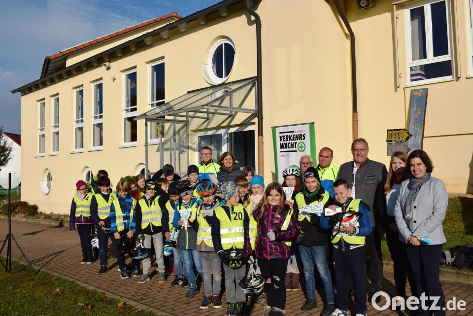 Bürgermeister Anton Peter gratulierte zum guten Ergebnis und hatte ebenso wie Sabrina Birke von der Sparkasse, die vor 20 Jahren an gleicher Stelle ihre Radprüfung gemacht hat, Geschenke für die neu geprüften Radlfahrer dabei.