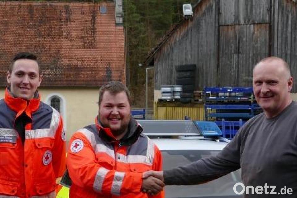 Tobias Hofmann, Leiter der Helfer-vor-Ort-Gruppe Ammerthal, und HvO-Vertreter Tobias Schmidt freuten sich über die Reifen- und Felgenspende samte Montage, die zeige, dass die Gruppe mit ihrer Tätigkeit in der Bevölkerung gut ankomme und man mit dem Engagement nicht alleinstehe.