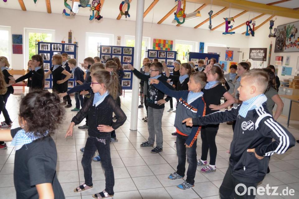 Zweit- und Viertklässler zeigten ihren einstudierten Tanz "Rap weißblau". Weiß-blau, weil das natürlich die Farben der bayerischen und isrealischen Fahne sind. Mit dem Lied "Like the flowers" hieß Lehrerin Daniela Roggenhofer mit den Kindern die Gäste herzlich willkommen. Die Schüler der 1. und 2. Klasse mit ihren Klassenleiterinnen Claudia Högl-Graf und Elvira Rückerl hatten Brotzeittüten bunt bemalt und zusammengeklebt. In einer Mitmach-Aktion forderte die Schulleiterin die Gäste auf, sich künstlerisch zu betätigen und Blumen der Freundschaft zu schneiden und in der Aula auf der bereits bestehenden großen Freundschaftsblumenwiese zu ergänzen.
