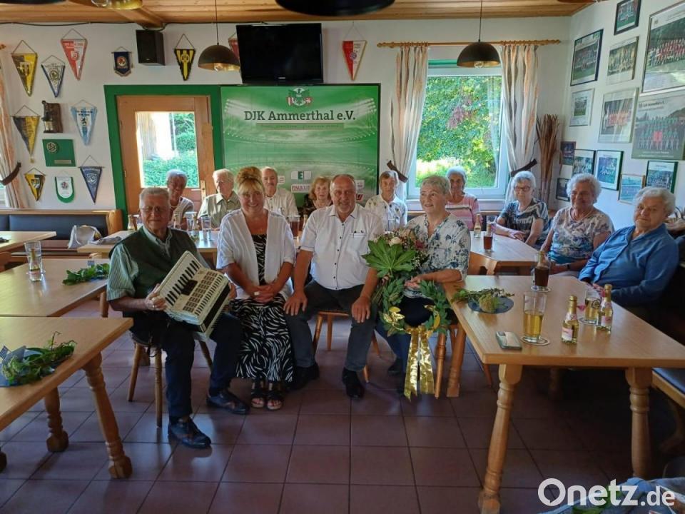 Suttners Dank galt der DJK Ammerthal, die dem Seniorentreff die Räumlichkeiten überlässt, und Margit Mayer, die die Bewirtung übernimmt. Bürgermeister Anton Peter und Ammerthals Seniorenbeauftragte würdigten Christa Suttners langjähriges ehrenamtliches Engagement und überreichten ihr einen Blumenstrauß. Jeder Teilnehmer bekam außerdem einen Piccolo. Die Gemeinde spendierte das Essen und die Getränke, wofür sich die Senioren mit einem kräftigen Applaus bedanken. Als Überraschungsgast schaute der frühere Landrat Armin Nentwig vorbei. Er packte sein Akkordeon aus, ließ Lied- und Notenblätter verteilen und sang gemeinsam mit den Senioren, was super ankam und für Stimmung sorgte.