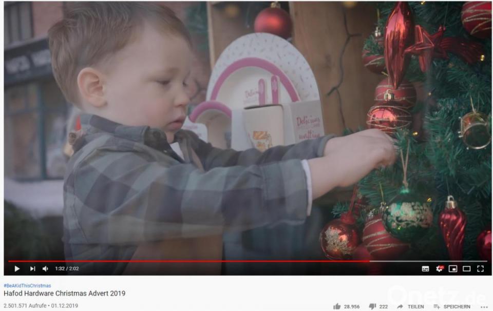 Einen filmischen Hit hat "Hafod Hardware", ein kleiner Haushaltswarenladen aus Wales, gelandet. Mit kleinem Budget. Wie unter anderem der Branchendienst W&V berichtet, waren rund 100 Pfund (118 Euro) nötig um mit dem Film den Nerv - oder besser das Herz der Betrachter zu treffen. Knapp 1,2 Millionen Views hatte der Spot in fünf Tagen auf Youtube zu verzeichnen. Worum geht es? Im Film packt der kleine Arthur (2) im kleinen Handwerkerladen seines Vaters mit an. Arther macht alles, was ein Mitarbeiter macht. Er putzt den Tresen, räumt Regale ein, bedient Kunden und packt Geschenke ein. Die Botschaft: "Be A Kid This Christmas." (Sei an Weihnachten ein Kind).