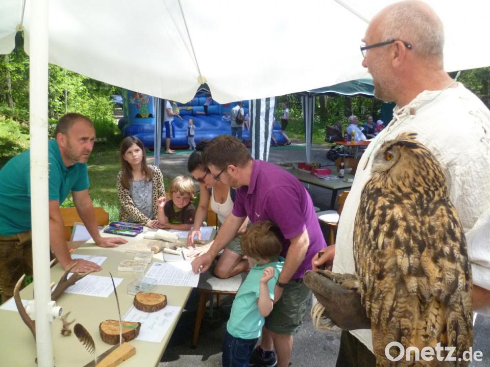 Am Info- und Prüfungsstand, an dem verschiedene Fragen auch zu Insekten und Waldkräuter zu beantworten waren, zog Hans Weiß mit seinem zahmen Uhu das Interesse von Groß und Klein auf sich. Und wer von den Erwachsenen den Mut zum Fehlschuss hatte, ging im Laser-Kino auf die Jagd. Dabei zeigte sich sehr schnell, dass beispielsweise die auf der Schieß-Leinwand schnell wechselnden Wildschweine nur von geübten Schützen zu treffen sind.