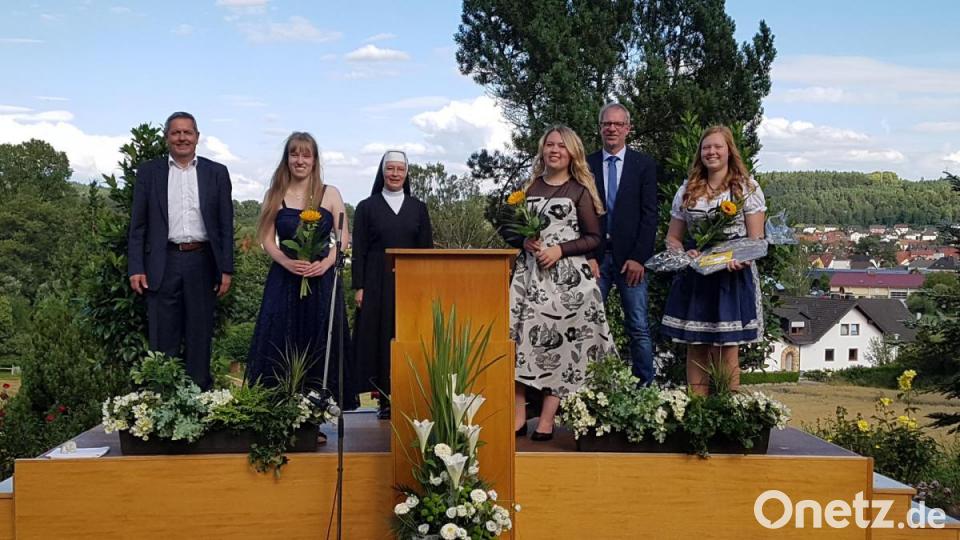 Schwester Lioba Endres blickte auf 75 Jahre Frieden in Europa zurück und erinnerte daran, was daraus alles entstanden ist. Sie lobte die freundlichen und hilfsbereiten Entlassschüler, auf die immer Verlass gewesen sei. Für die Schule sei es eine Ehre gewesen, die beiden Klassen begleiten zu dürfen. Dren Sprecher bedankten sich bei ihren Lehrkräften, der Schulleitung sowie den Verwaltungsangestellten und überreichten ihnen als Dankeschön individuelle, liebevoll zusammengestellte Abschiedsgeschenke.