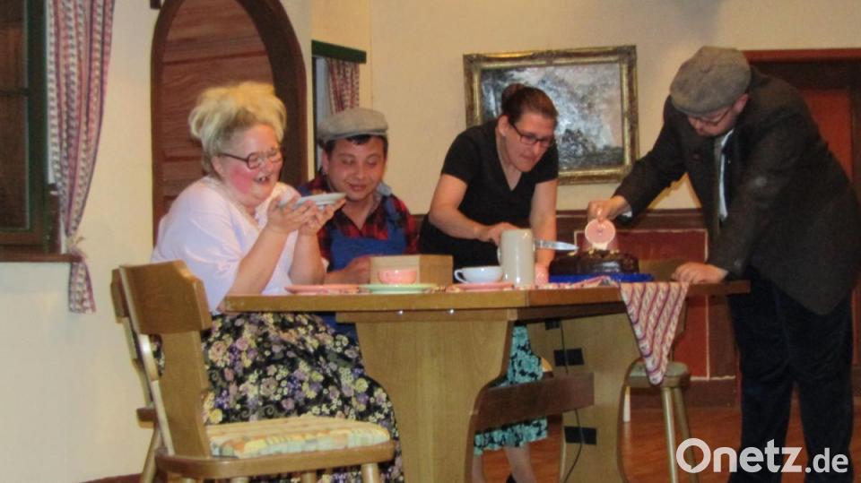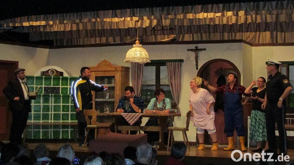Noch im ersten Akt betraten Jakobs Freund Josef Heiliger (Florian Himmelhuber), ebenfalls aus dem Schlafzimmer ausquartiert, seine Frau Rosi Heiliger (Michaela Diertl), die Frauenbundvorsitzende, der Postbote Gustl Rapplmeier (Thomas Riedhammer) und die hilfsbereite Witwe Ella Hubermeier (Kerstin Meisel) gut in die Handlung integriert die Bühne. In die vielseitige Geschichte mit breit verzweigten Handlungssträngen kam noch der finanzielle Engpass von Jakob Damler, denn aus einer Bürgschaft forderte die Bank binnen zwei Wochen die Zahlung von 80 000 Euro. So fürchteten die Damlers, Haus und Hof verkaufen zu müssen.