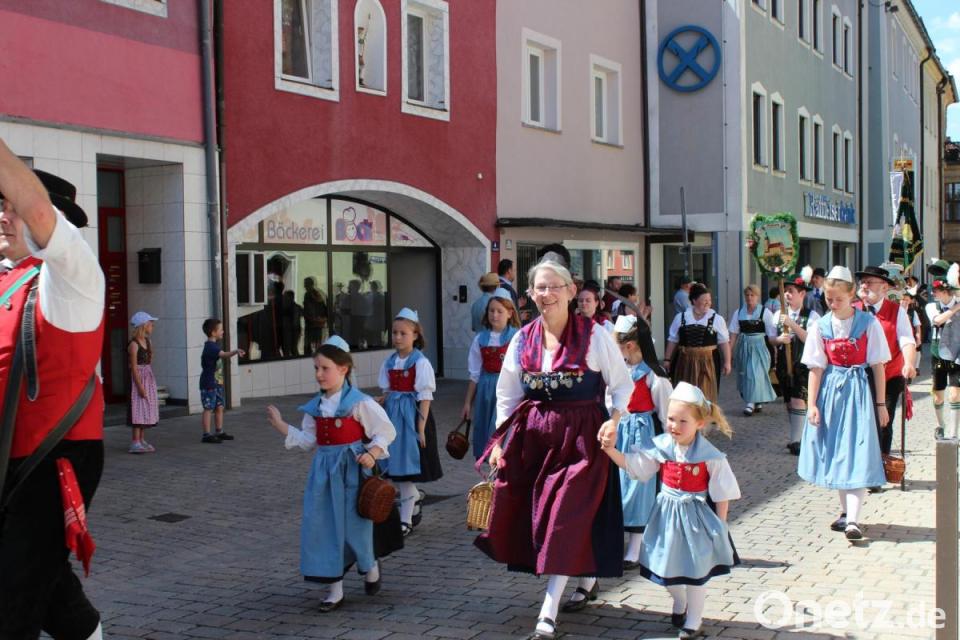 Dem Festzug am Nachmittag mit Gästen aus der gesamten Oberpfalz sowie aus Mittel- und Oberfranken war am Vormittag ein Festgottesdienst in der Pfarrkirche vorausgegangen. Anschließend unterhielten in der zum Festsaal umfunktionierten Helmut-Ott-Halle mehrere Jugendgruppen mit Tänzen. Den musikalischen Part lieferte die Neukirchner Blasmusik. Grußworte sprachen Landrat Richard Reisinger als Schirmherr des Jubiläums, Bürgermeister Joachim Neuß und Vorsitzender Hubert Pfab. Der Jubiläumszug mit 46 Gruppen, davon sechs Musikkapellen, bewegte sich vom Place de Laneuveville durch die Innenstadt.