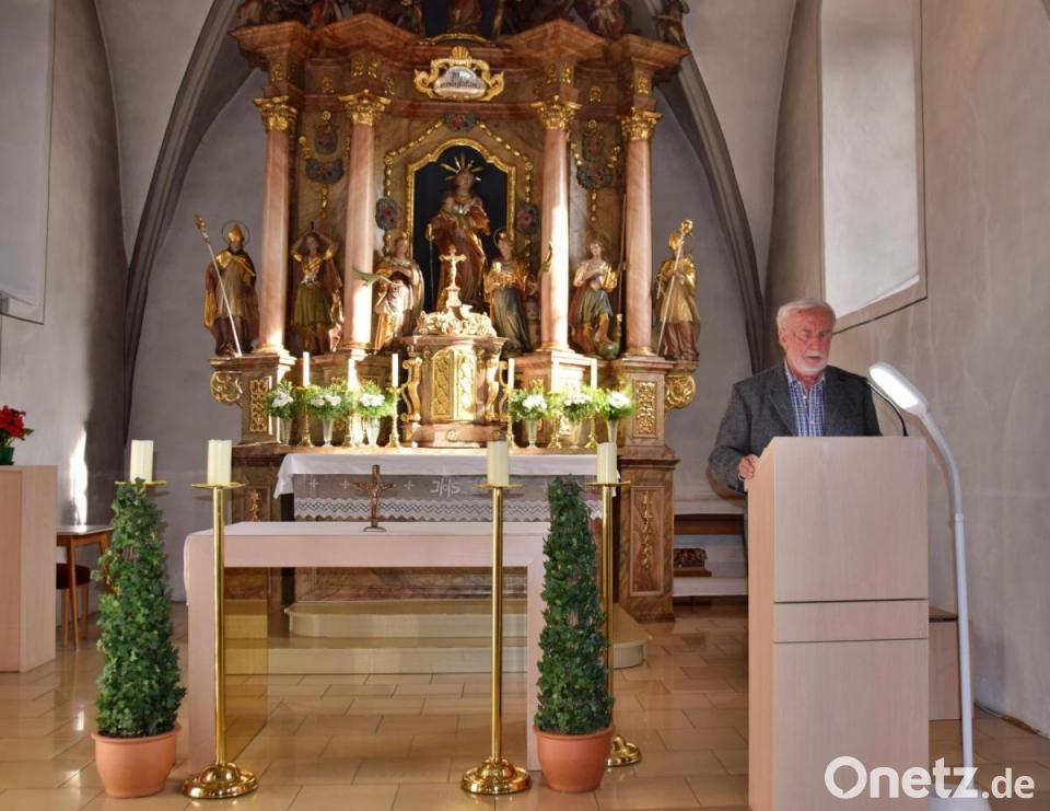 „Die drei Altäre stammen vom berühmten Auerbacher Bildhauer Johann Michael Doser. Er hat sie von 1741 bis 1749 gefertigt", erklärte Rudolf Weber. Dieser Künstler wurde in Degelsdorf geboren und wohnte in Auerbach in der Unteren Vorstadt. In 60 Orten und Kirchen sind Werke von Doser zu finden, die der ebenfalls berühmte Auerbacher Kirchenmaler Johann Michael Wild bemalt und vergoldet hat. Die Teilnehmer bewunderten den Hauptaltar, an dem die 14 Nothelfer dargestellt sind, sowie die herrlich bemalte Doppelempore mit Szenen aus dem Leben der Heiligen Katharina.
