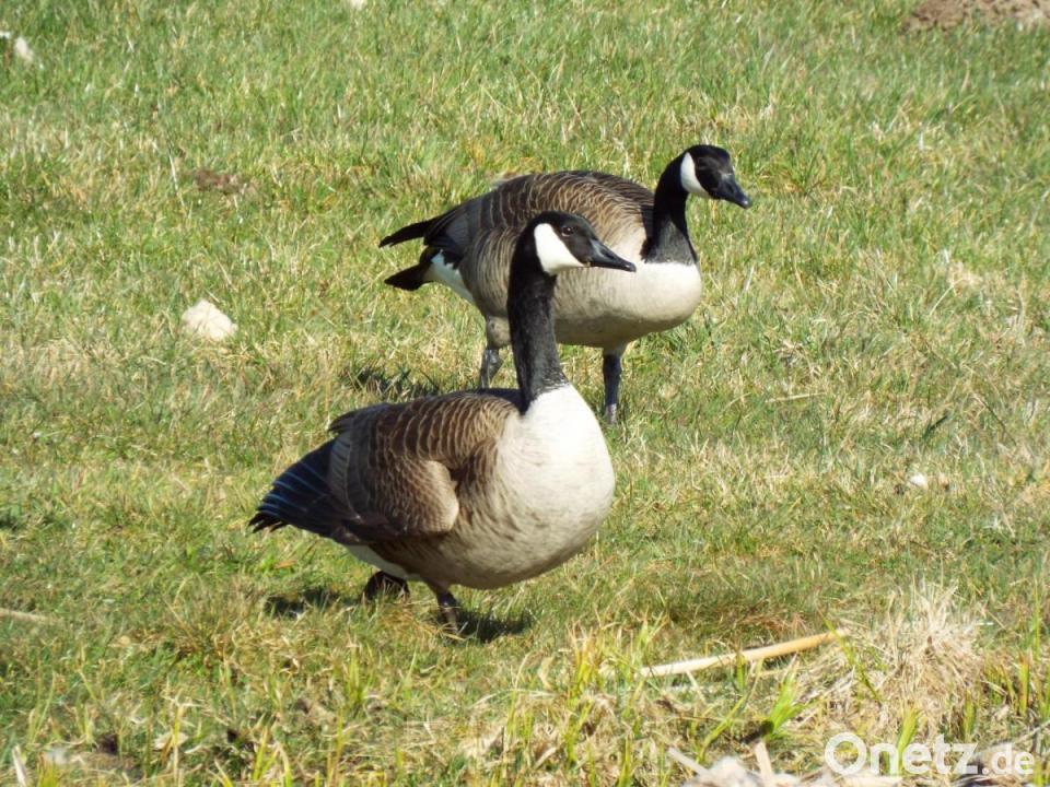 Auch die Vogelwelt wird unter der gegenwärtigen Wärme quietschmunter. Besonders auffällig sind auf den Wiesen und Feuchtgebieten rund um Auerbach ihre großen Vertreter wie der Storch oder der Graureiher. Doch noch wuchtiger als diese beiden sind die Kanadagänse, die sich am Dienstag an einem Weiher beim Ortsteil Sand die Sonne auf die Federn scheinen ließen. Kanadagänse sind die größten Wildgänse, die man in Deutschland in freier Wildbahn beobachten kann. Sie werden bis zu 110 Zentimeter groß und über 6 Kilogramm schwer.