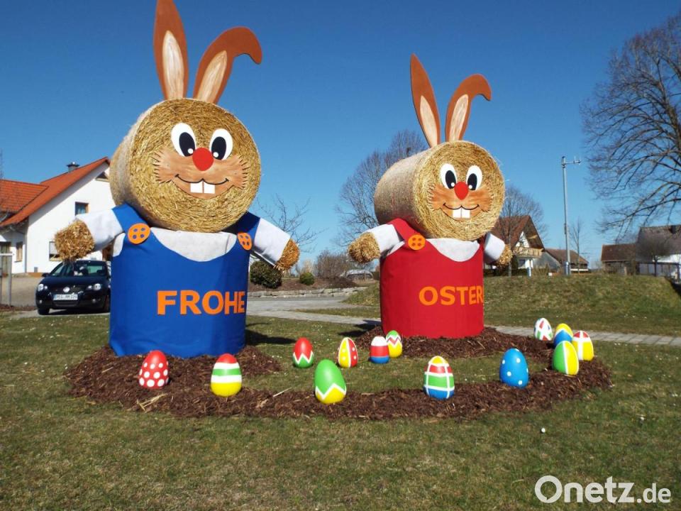 So hat die Nasnitzer Feuerwehr ihre beiden Riesen-Strohhasen, die allen Vorbeikommenden "Frohe Ostern" wünschen, wieder vor dem Gerätehaus aufgestellt. Dieses Jahr ist sogar ein Ring aus bunten Eiern dazugekommen. Allerdings kann keinem Osterhasen empfohlen werden, die in seinen Korb zu packen, denn sie sind aus Beton. Angemalt haben die überdimensionierten Eier die Mädels und Jungs des Feuerwehr-Nachwuchses unter der Leitung von Andreas Kohl.