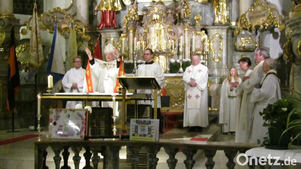 Am Anfang erbat Dekan Pater Markus Flasinski den Segen Gottes mit Paul Weismantels Worten "Gott segne uns, durch die unterschiedlichsten Ereignissedes heutigen Tages mit der Kunst des Vertrauens ". Dann begrüßte er Erzbischof Dr. Ludwig Schick und die Brüder im priesterlichen Dienst, die vielen Mitwirkenden an den Veranstaltungen, Projekten und Aktionen des Jubiläumsjahres. Von evangelischer Seite waren Pfarrer Moritz von Niedner und Helmut Porsch, Ökumenebeauftragter des Dekanats Pegnitz, gekommen, ebenso stellvertretender Landrat Martin Weiß und Bürgermeister Joachim Neuß, die Schwestern des Mutterhauses Auerbach und von Regens Wagner Michelfeld sowie Pfarrer Jan Nikel aus Neuhaus, wo bei der Umstrukturierung des Dekanats der Anschluss an das Dekanat Auerbach angestrebt wird.
