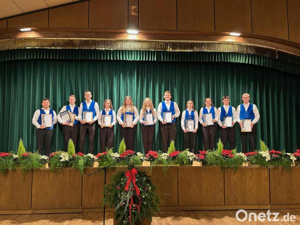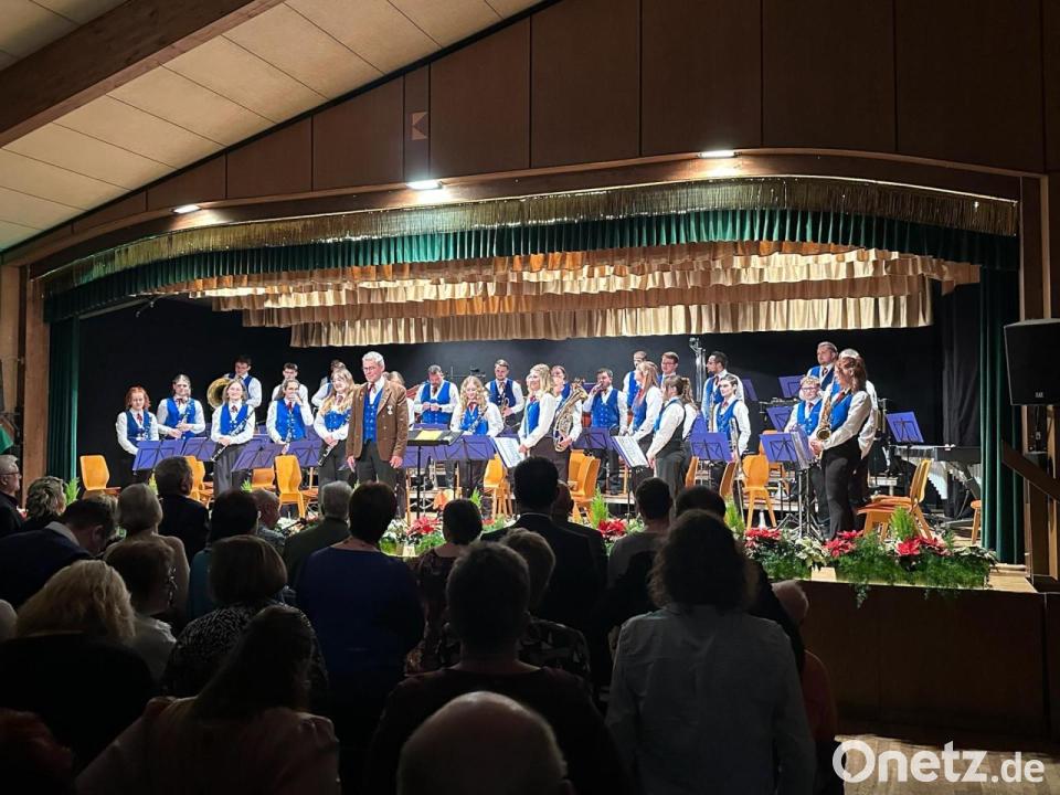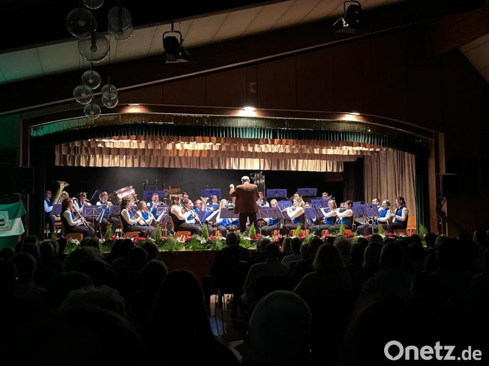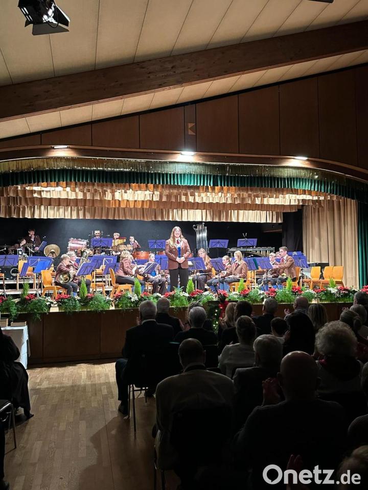 Als sich um kurz nach 19.30 Uhr der grüne Samtvorhang vor der Bühne öffnete, warteten dahinter 18 junge Musikerinnen und Musiker in Tracht und mit polierten Instrumenten. Mit einer Weihnachtsfanfare eröffnete das Jugendblasorchester unter der Leitung von Kira Lorenz das Weihnachtskonzert. Es folgte eine festliche Mischung aus traditionellen Stücken wie "Kling, Glöckchen" und Popsongs wie "Rocking Around the Christmas Tree".