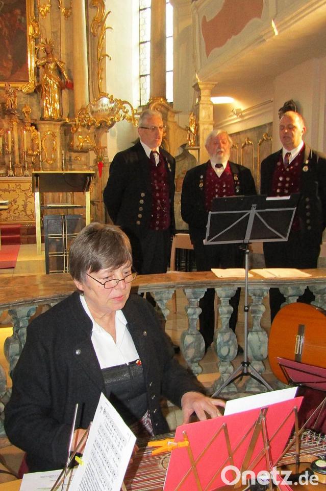 Interessant und spannend war das Spiel der Birgländer Stubenmusik mit dem Wechsel der Instrumente in den Musikstücken und in der Gesangsbegleitung. Da stellte Herbert Brzoza auch mal das Hackbrett beiseite und griff zum Akkordeon. Flöte, Gitarre und Hackbrett erklangen bei den Birgländern nach einer Meditation über Maria als Symbolfigur des mitleidenden Menschen. Auf die Aufforderung der Sulzbacher Sänger, aufzuwachen nach dem kleinen Tod des nächtlichen Schlafs, folgte ein weiterer Beitrag der Stubenmusik.