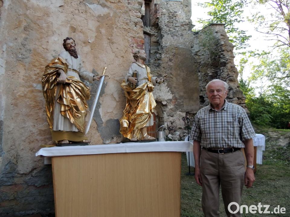 (mor) Zwei Tage nach seiner Geburt in Hopfenohe am 2. April 1935 wurde Richard Lehner in der Pfarrkirche St. Peter und Paul getauft. Der heute 83-Jährige nahm jüngst am Gottesdienst des Dekanats Auerbach in der Kirchenruine teil und erinnert sich noch, als er im Gotteshaus der bereits geräumten Ortschaft ministrierte. Auch über die Aktivitäten von Pfarrer Ritter und die Erweiterung des Gotteshauses wusste Richard Lehner zu berichten.