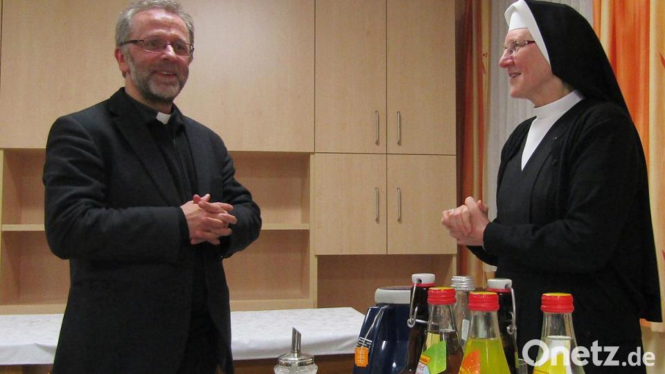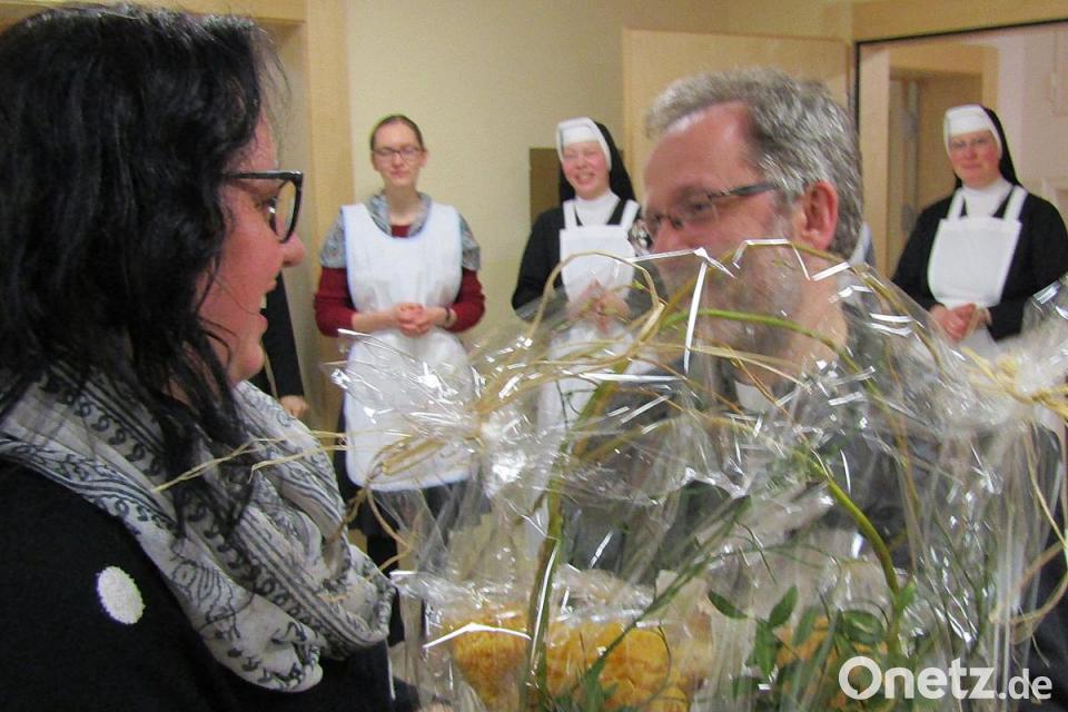 Beim anschließenden Imbiss dankte Provinzoberin Schwester M. Lucilla Hauser ihm mit einem Buch zum Thema "Hoffnung, die uns trägt", und Dekanatsratsvorsitzende Sonja Schwemmer überreichte zum Dank für die gemeinsam gefeierte Vesper einen Geschenkkorb.