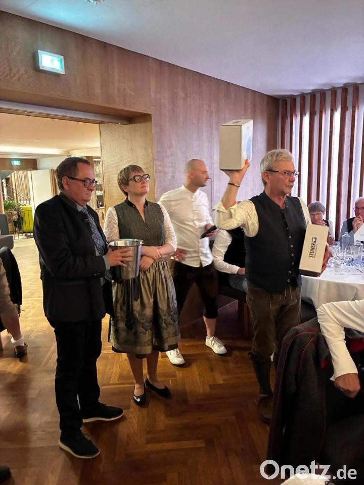 Für beste Unterhaltung sorgte Rotary-Mitglied Hans Renner, der mit Witz und Charme durch die Verlosung führte. Als Losfee fungierte Notarin Katja Rödiger, die unter den anwesenden Gästen Ferngläser, Bierfässer der Brauerei Kummert und Gutscheine des Landhotels „Weißes Roß“ verloste. So kamen zusätzliche 2990 Euro zusammen. Für musikalische Stimmung sorgte Erich Übler, ehemals Gitarrist der Band Sommerseit’n, der spontan zur Gitarre griff und das Publikum mit bekannten Liedern begeisterte.