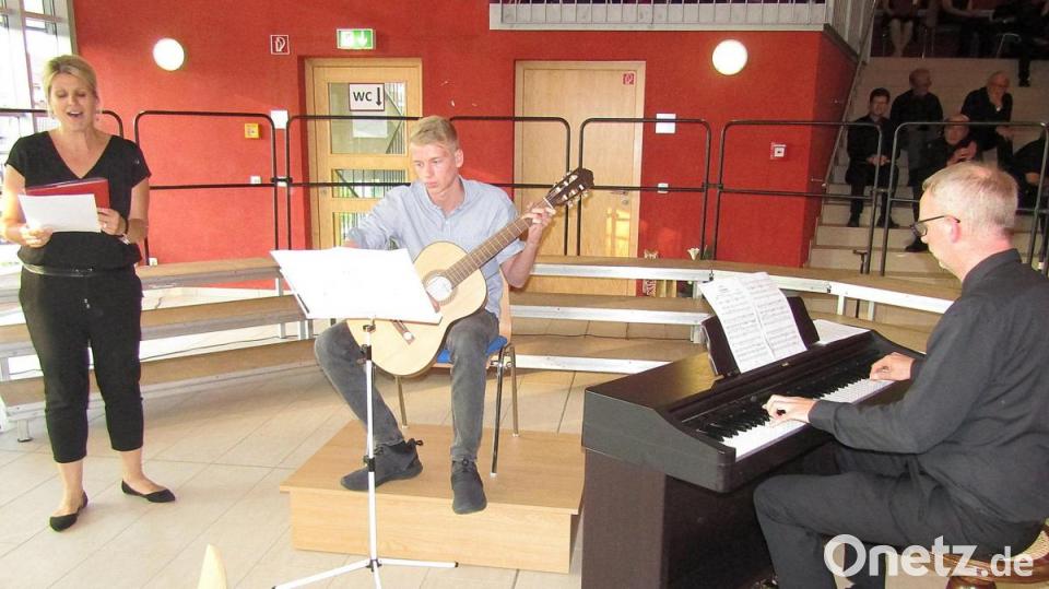 Eine bravouröse Figur machte der gemischte Chor des MGV in den von Loewe vertonten Gedichten wie etwa Goethes "Im Vorübergehn". Sandra Weber gefiel mit der Goethe-Ballade "Wie herrlich leuchtet mir die Natur" und dem "Ständchen" nach Worten eines anonymen Dichters, bei dem sie von Ehemann Markus Weber am Klavier und Sohn Julius Weber an der Gitarre begleitet wurde. Der MGV-Männerchor entließ mit dem Volkslied "Kloster Grabow" die Besucher in die Pause.