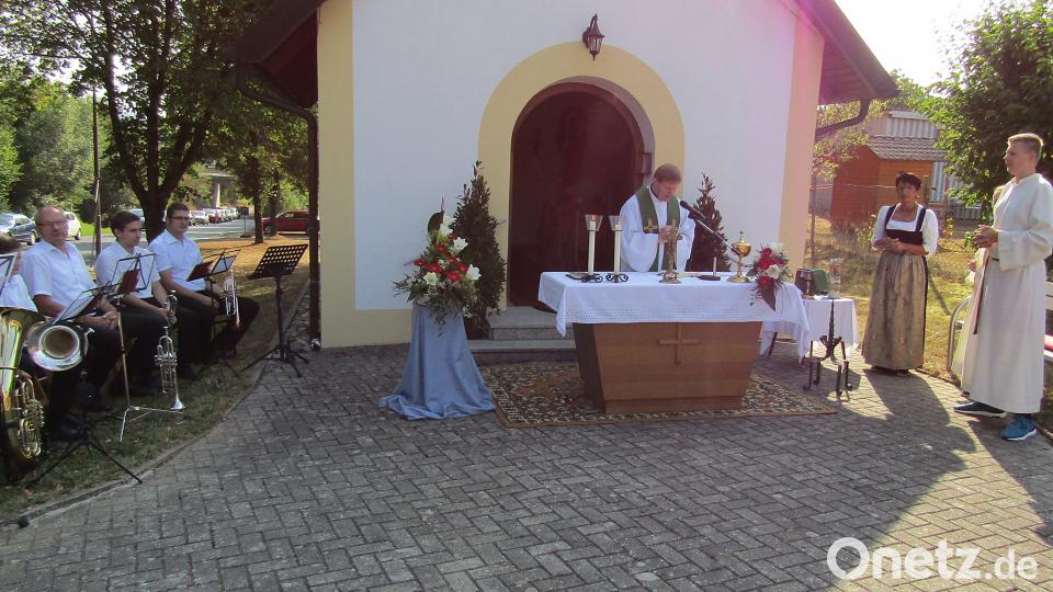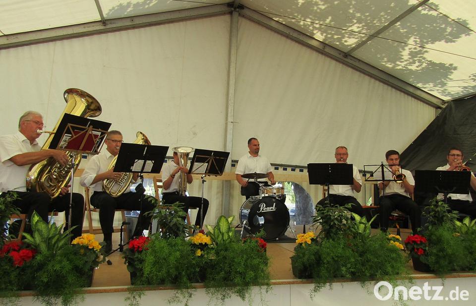 Zur festlichen musikalischen Begleitung der Messgesänge hatte die Siedlergemeinschaft die Bläsergruppe Franz engagiert. Nach dem Gottesdienst spielte das Sextett um den gebürtigen Auerbacher Roland Franz beim Weißwurstfrühschoppen im Festzelt munter und frisch mit Volksmusik auf.