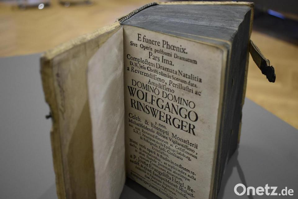 Im Sitzungssaal des Rathauses präsentierte Bürgermeister Joachim Neuß am Dienstag den Sammelband von Abt Wolfgang Rinswerger, der von 1707 bis 1721 die Benediktiner-Abtei im Kloster Michelfeld geleitet hat. Seine Gedichte, Dramen und Bühnenstücke erschienen unter dem Buchtitel „E funere Phoenix“, herausgegeben von Rinswergers Mitbruder Pater Johann Evangelist Heigl. Aus der dritten Auflage, 1729 gedruckt, kam kürzlich ein Band auf den Markt, den die Stadt Auerbach erworben hat.