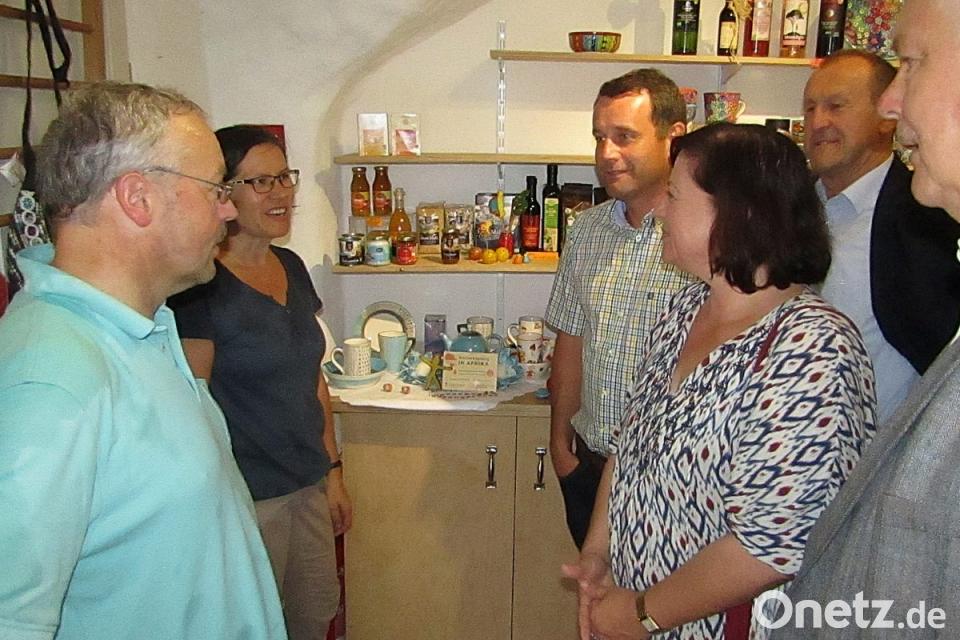 Bei einem Austausch über das politische Tagesgeschehen kam auch die Ablehnung der Petition zum Lastenausgleich für die Randgemeinden des Truppenübungsplatzes Grafenwöhr im bayerischen Landtag zur Sprache. Dem Eintrag ins goldene Buch folgte bei Andreas Karl und Christine Nickl-Dütsch ein Besuch im Eine-Welt-Laden mit seinen Fair-Trade-Produkten.