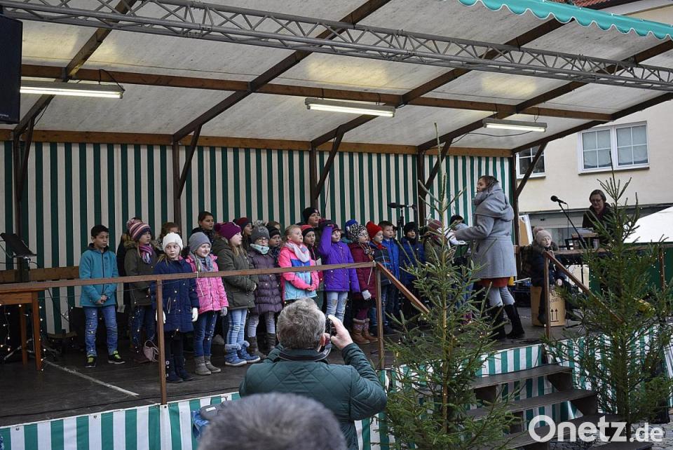 Rund 30 Kinder der Dr.-Heinrich-Stromer Grundschule kamen mit ihrer Lehrerin Theresa Dietel auf die Bühne und sangen zur Klavierbegleitung von Agathe Schriml neue Weihnachtslieder. Manches Kind übernahm auch eine Solopräsentation beim Gedichtvortrag oder beim Flötenspiel.