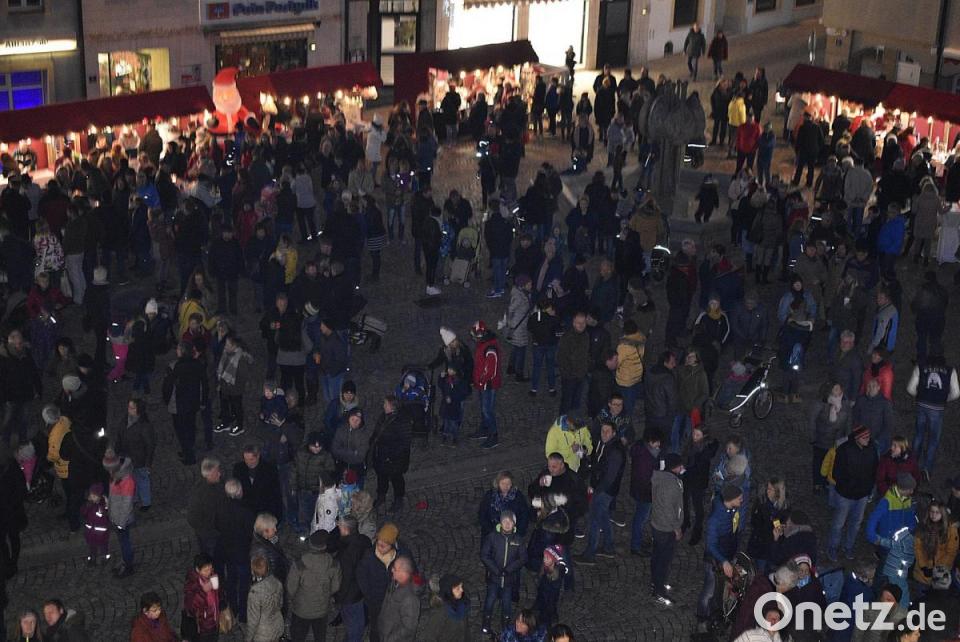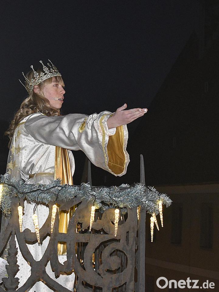 Schnell verging die Zeit. Viele fieberten dem Prolog des Auerbacher Christkinds, Marina Brütting, entgegen, das von Scheinwerfern bestrahlt auf dem Balkon des Schenkl-Schulhauses seine Weihnachtsbotschaft verkündete.